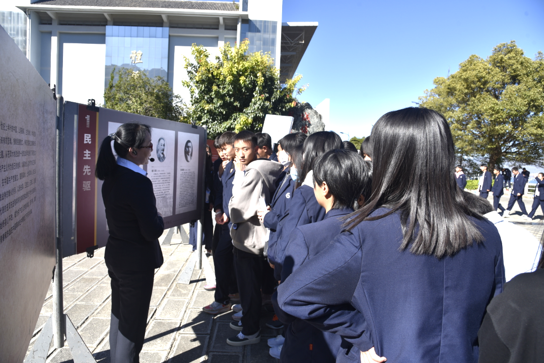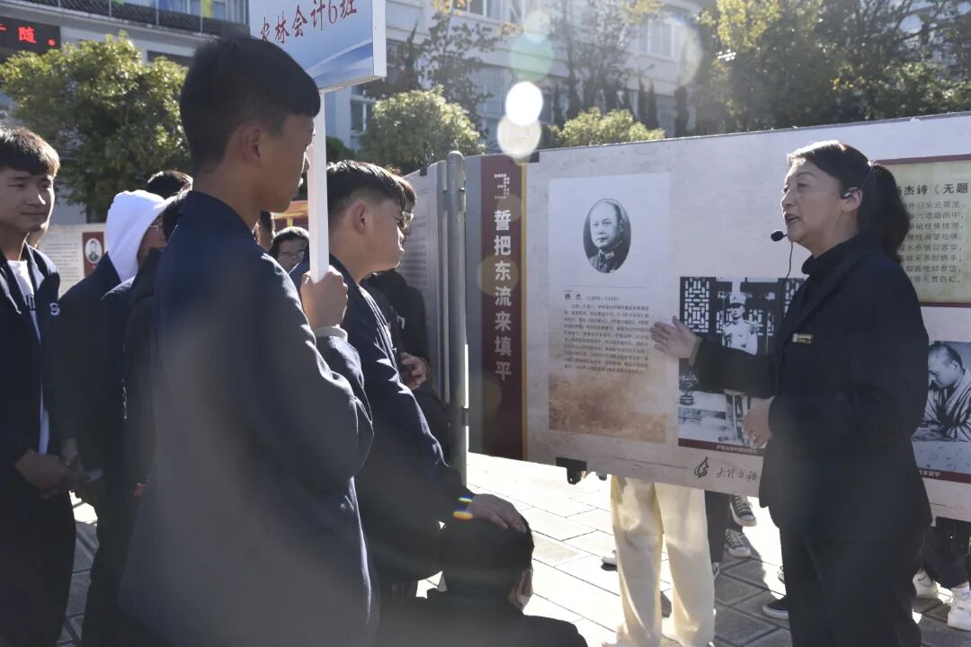 當(dāng)天下午,大理州財(cái)貿(mào)學(xué)校學(xué)生工作處組織了全校學(xué)生在緊張繁忙的學(xué)習(xí)之余分批次參觀展覽。講解員老師根據(jù)學(xué)生的年齡、興趣和知識(shí)結(jié)構(gòu),挑選出不同的展覽進(jìn)行分類講解。同學(xué)們或聚精會(huì)神地傾聽、或駐足觀看展覽內(nèi)容,通過講解員熱情耐心的現(xiàn)場(chǎng)講解,深埋于學(xué)生們心靈的愛國之情被激發(fā)出來,紛紛與講解員互動(dòng)討論,收獲了滿滿的知識(shí)和喜悅。