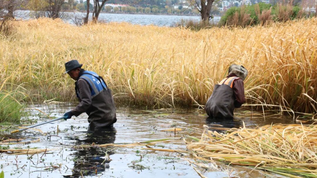 街道辦在大理州、市洱海保護(hù)治理指揮部的統(tǒng)一部署下,積極有效地開(kāi)展冬季湖岸死亡水草清理專(zhuān)項(xiàng)整治行動(dòng)。截止目前共出動(dòng)人員3000多人次,機(jī)械臺(tái)班150臺(tái)次,清理雜草、枯草等水生植物700多噸。