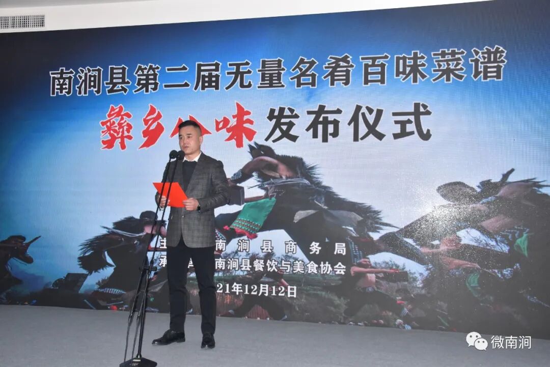 12月12日,南澗跳菜第三批“五個(gè)一百”授牌儀式暨第二屆無量名肴百味菜譜“彝鄉(xiāng)八味”發(fā)布儀式在陽光酒店舉行。大理州彝學(xué)學(xué)會(huì)張明,州商務(wù)局黨組書記、局長王會(huì)琴,州商務(wù)局副局長茶加標(biāo),州投資促進(jìn)局副局長茶文亮、州文旅局督查專員徐逵、州餐美協(xié)會(huì)會(huì)長趙俊磊到場作指導(dǎo)。王紹基、施文妍、沈文榮、黃希里等縣四班子領(lǐng)導(dǎo)參加發(fā)布儀式。