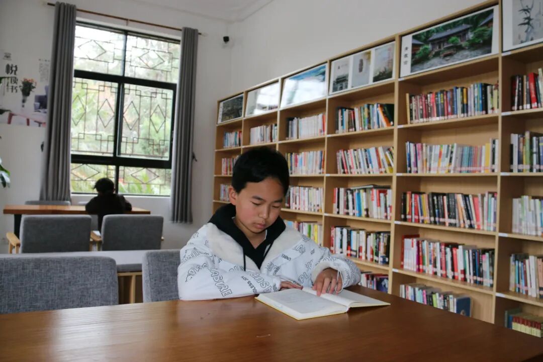 在巍山縣圖書館24小時自助書房內(nèi),文華中學(xué)七年級學(xué)生高海銘和在五印鄉(xiāng)巖子腳小學(xué)讀書的堂弟高紅宇在認(rèn)真看書。高海銘告訴記者,堂弟假期來家里的這幾天,兄弟二人每天都來自助書房看書二、三個小時,年前到現(xiàn)在都是如此。“這里環(huán)境安靜,很喜歡這樣的閱讀氛圍。” 高海銘說。