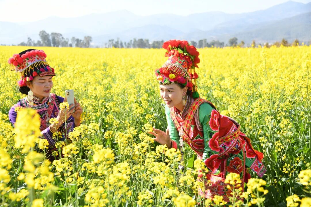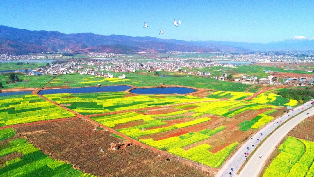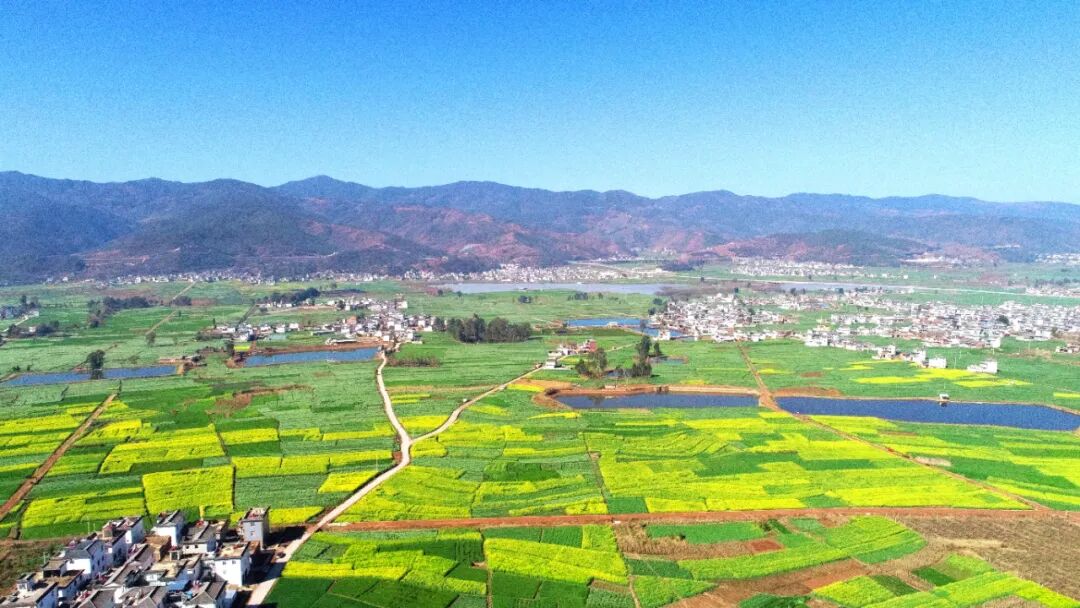 春回大地,巍山縣21.8萬畝小春農(nóng)作物在當(dāng)?shù)剞r(nóng)民的精心管護(hù)下長勢喜人,與此同時2.3萬畝油菜花競相綻放。