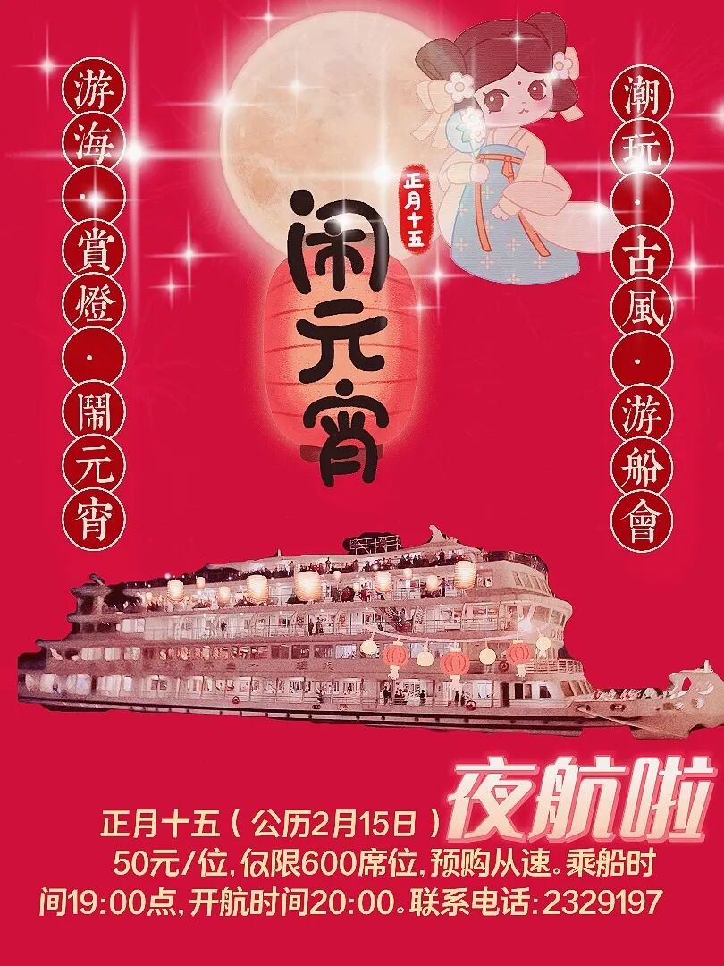 今年特別推出了以“潮玩·古風(fēng)·鬧元宵”為主題的乘船夜游活動。