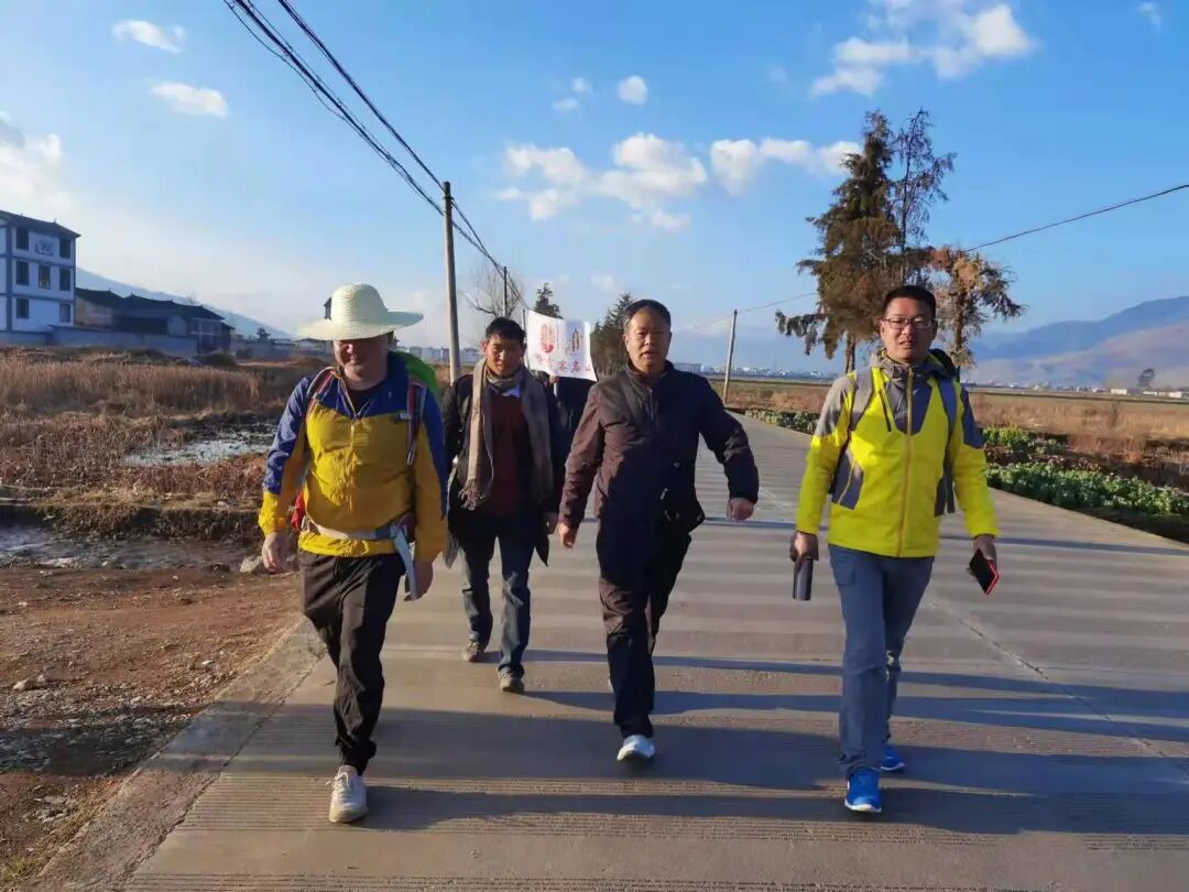 2月24日上午途徑鶴慶縣松桂鎮(zhèn),鎮(zhèn)黨委書記楊金奎熱情接待,并介紹了松桂老街的歷史和東坡未來的發(fā)展規(guī)劃,并親自帶領(lǐng)大家感受了正在修建的東坡云上游步道。