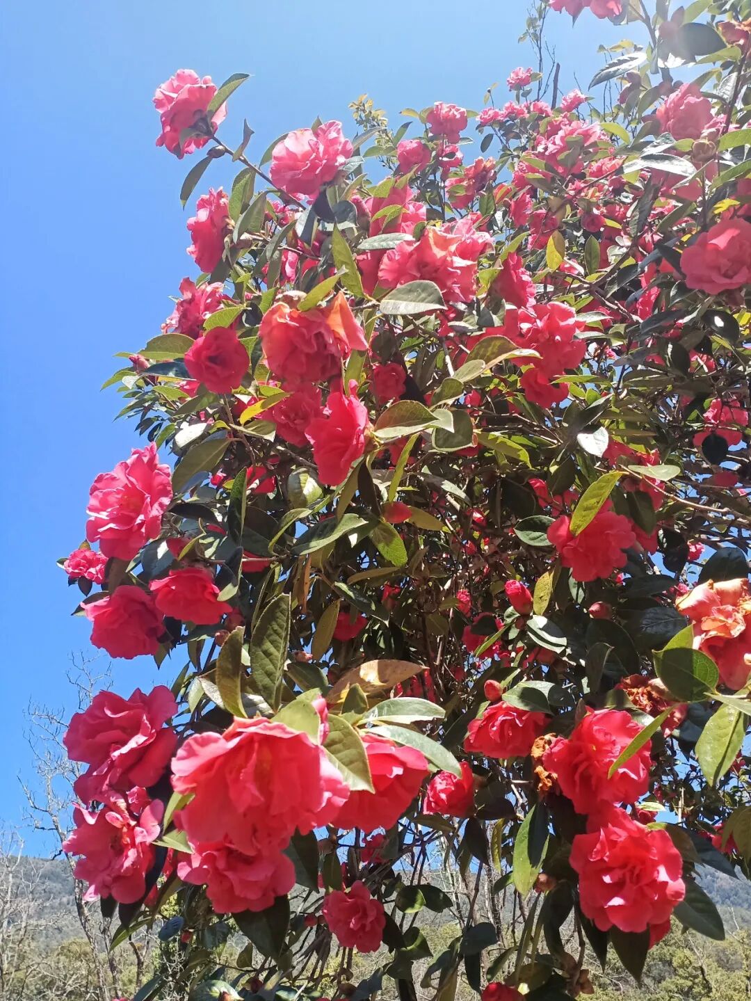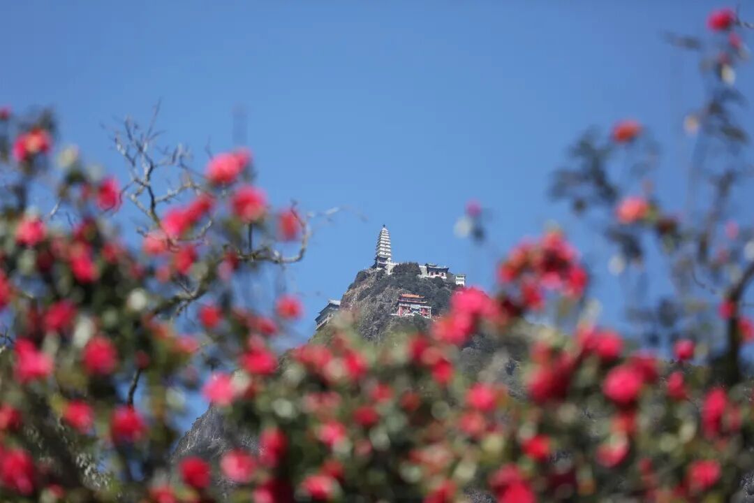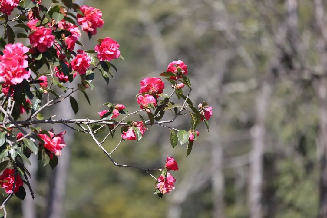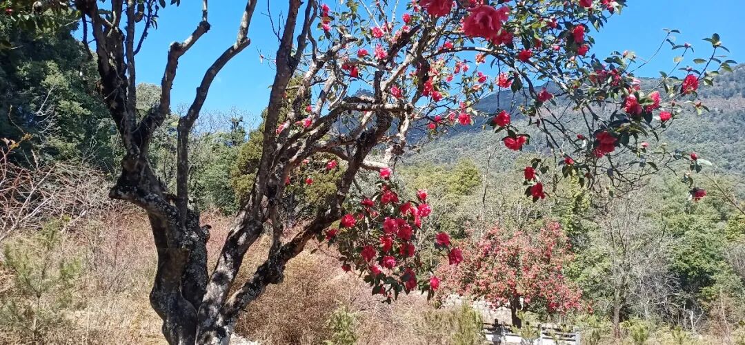 朋友介紹雞足山華嚴(yán)寺、慧燈庵300多年前的3株古山茶歷經(jīng)嚴(yán)冬孕蕾,冰雪洗禮,春風(fēng)吹開(kāi),萬(wàn)朵紅艷,我們迫不及待前行。
