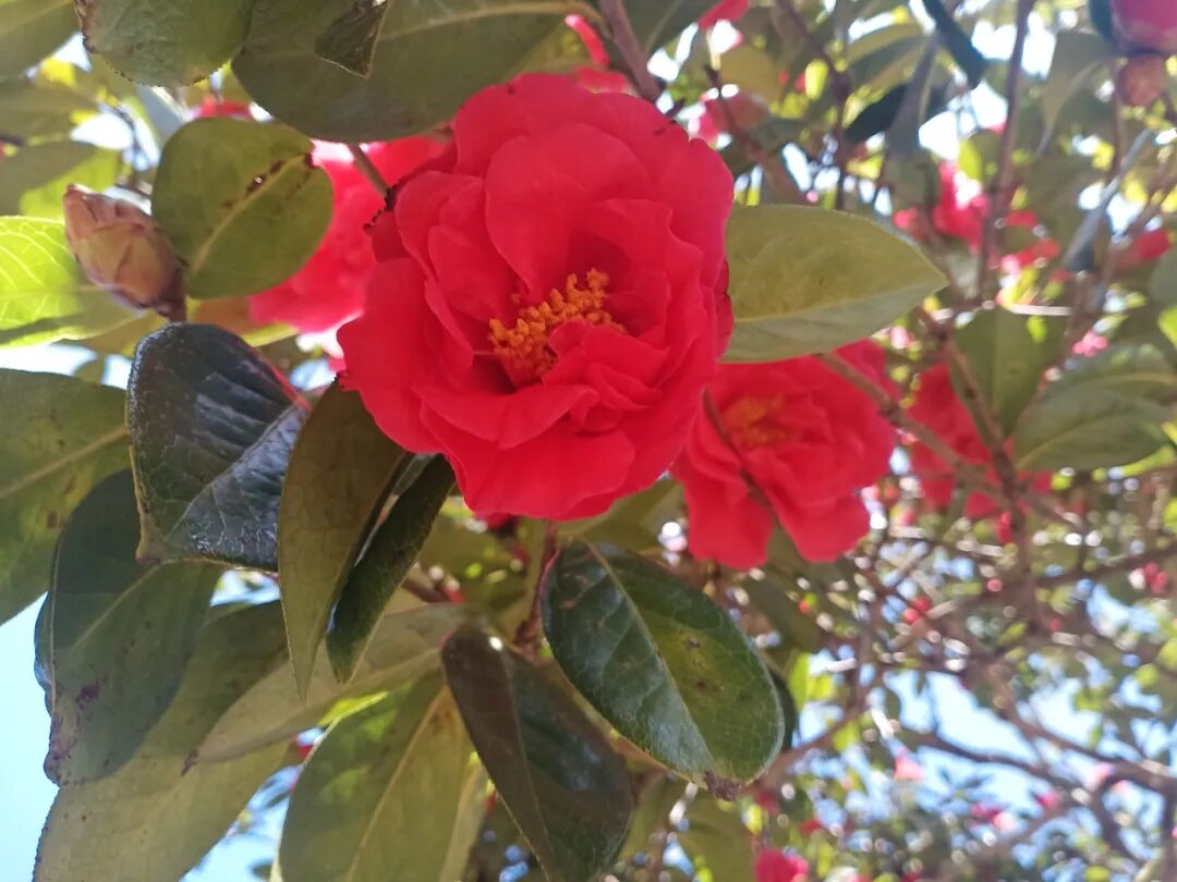 山茶為山茶花科的常綠灌木,耐蔭喜潮濕,山茶花花姿豐盈,端莊高雅,為中國(guó)傳統(tǒng)十大名花之一,也是世界名花之一,大理是茶花之鄉(xiāng),其花艷、瓣重、色多均列全國(guó)前茅。郭沫若親手寫(xiě)下了“艷說(shuō)茶花是省花,今來(lái)始見(jiàn)滿城霞,人人都道牡丹美,我道牡丹不及茶”的著名詩(shī)句。