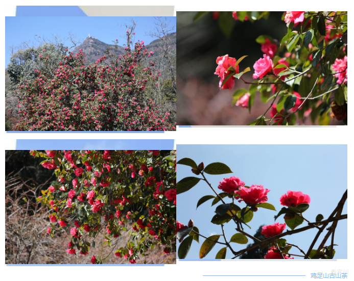 山茶分單瓣類(lèi)、復(fù)瓣類(lèi)和重瓣類(lèi),坐落于雞足山華嚴(yán)寺、慧燈庵的三株云南古山茶屬于重瓣類(lèi),花期較長(zhǎng),觀賞價(jià)值較高,每年春節(jié)期間競(jìng)相開(kāi)放,爭(zhēng)奇斗艷,如同身著粉紅羅裳的美人,艷而不俗,柔而不弱,一簇簇如同杯中酒花,猶如落落大方的貴婦人,吸引了很多游客,成為雞足山中一大美景。