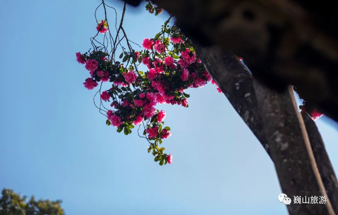 “綠葉紅英斗雪開,黃蜂粉蝶不曾來。海邊珠樹無顏色,羞把瓊枝照玉臺?!睆拿鞔鸂钤獥钌鲗@棵山茶花極盡贊美的詩句中也可以看出早在明朝,這棵山茶花就是南詔故地的名花名樹了。