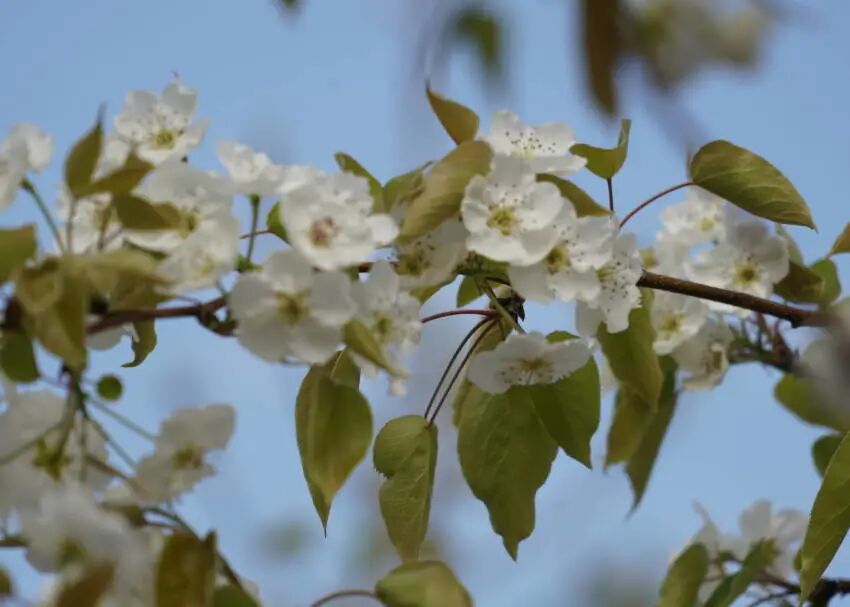 舉目枝頭,繁花若雪,一簇簇潔白的花兒,或悠然吐蕊,或含苞欲放,在這嫩綠的葉芽兒間,一色的清麗脫俗,一色的淡雅圣潔。