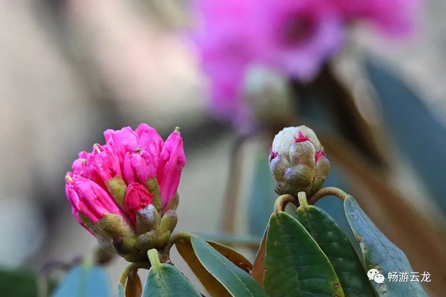 去年6月份,與朋友閑聊時(shí)提到云龍漕澗梁子上有一種杜鵑是黃色的,杜鵑種類很多,拍到的花色也有多種,但記憶中沒有拍過黃色的,好奇的攝心一直留存在腦際,今年初春與人咨詢,應(yīng)在四月中旬綻放。前兩日,與在山上風(fēng)力發(fā)電廠的朋友聯(lián)系,知花已開。于是約了朋友走進(jìn)梁子,去聽風(fēng)賞花。梁子的海拔在3000米左右,杜鵑花開了幾種,叫不上名,拍了一點(diǎn)花絮,呈上共賞。
