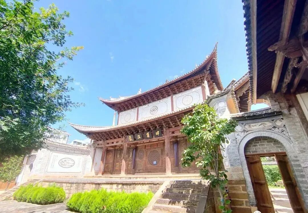 由北面的通道,朝西走進(jìn)了玉皇閣建筑群的前殿,此殿比較精巧,南北、東面都有房,西面是高大雄偉的山門,殿內(nèi)花草樹木,四季花香,走出修繕后的山門,如同打開了一道書院通往外界的門,門里門外兩重天。當(dāng)我走出山門,暖和的陽(yáng)光,從門洞及圓形窗洞里射出來,因了大門坐東向西逆光,些許朦朧,但也不影響了大門的雄偉氣勢(shì),飛檐、如意斗拱顯得更加神秘有韻味。仰望山門,與幾百年的古建筑對(duì)話,撫摸著那道大門,它為一代代文華人打開了一道探索歷史的大門,探索人類社會(huì)發(fā)展的大門,滋養(yǎng)了一代又一代的南詔后裔。徜徉花園式的外院,聽到有人說這里不再是原來置身其間的模樣,是的,書院格局有些變化,但無論如何變,書院的靈魂永遠(yuǎn)不會(huì)變,書院的歷史教化功能永遠(yuǎn)不會(huì)變。歷史人文景觀巧妙融合在一起,這里已然更美,移步一景,漫步在古建筑群里,聽著飄渺的古樂曲,讓人流連忘返。不經(jīng)意就會(huì)觸碰到了你的靈魂,流光溢彩的古建筑無情卻有情,它陪伴著我們成長(zhǎng),浸染著我們的靈魂,照亮我們前行。如若你處在這樣一個(gè)文物古建筑群里,人的潛意識(shí)里或多或少都會(huì)有超越時(shí)空感,仿佛回到明清民國(guó)時(shí)期。從1875年傳來的朗朗書聲,一直傳響南詔故地,書院文化,潛移默化影響了一代代南詔后裔。文華書院,人類的精神家園。守護(hù)精神家園,讓我們的心田不荒蕪。朋友,來吧,與我一起徜徉巍山文華書院吧!