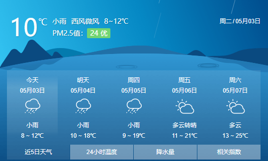 未來幾天,大理地區(qū)有小雨轉(zhuǎn)多云