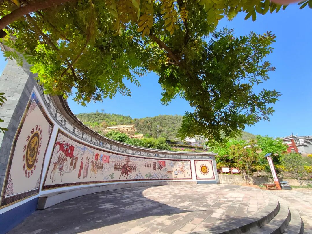 近年來(lái),新村先后爭(zhēng)取各類(lèi)投資約1128萬(wàn)元,完成修建青石板游道1782米、村內(nèi)石板路鋪設(shè)1800平方米;完成了污水處理設(shè)施、旅游公廁、彩畫(huà)描繪等附屬設(shè)施建設(shè);完成各類(lèi)綠化樹(shù)種植1375株、草坪綠化340平方米;建成了新村到巍寶山土主廟的青石板游道。在村口的民族團(tuán)結(jié)文化廣場(chǎng)上,建成了古色古香的風(fēng)雨走廊,并將祖先細(xì)奴邏的發(fā)跡史以連環(huán)畫(huà)的形式,繪到了廣場(chǎng)的大照壁上,供后人瞻仰。