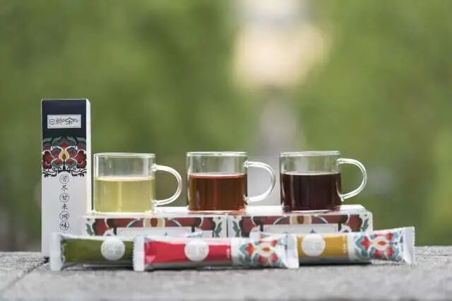 白族“三道茶”分苦茶、甜茶和回味茶,待客之時(shí)現(xiàn)場(chǎng)燒煮,工序繁瑣,而“白禮茶”作為大理傳統(tǒng)白族三道茶的升級(jí)便捷版,通過(guò)現(xiàn)代工藝加工,成為一種易溶入水而無(wú)茶渣的粉狀新型固體飲料,具備沖飲、攜帶方便等特點(diǎn),讓人們輕松沖泡三道茶。