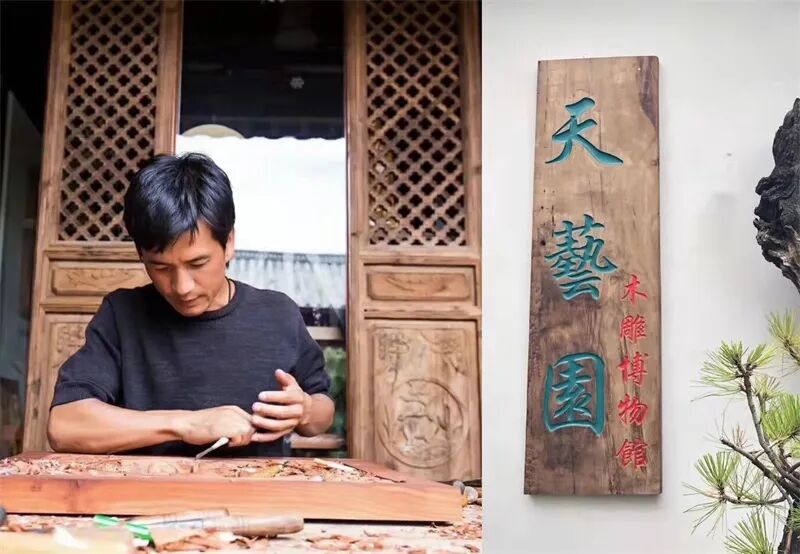 而80后的木雕匠人施順華,因?yàn)橄埠眠x擇了木雕行業(yè)。并跟著多個(gè)擅長(zhǎng)雕刻不同樣式的木雕藝人學(xué)習(xí),提升雕刻技藝。后來(lái),在各方面技藝都比較成熟的施順華開始了他的創(chuàng)業(yè)之路?!拔液軕c幸選擇了木雕這個(gè)行業(yè),而且有很多人喜歡我做的東西,我也想把這個(gè)東西做好做精,把這個(gè)技藝傳承下去,有些東西沒(méi)了就真的沒(méi)了?!笔╉樔A說(shuō)。在劍川縣甸南鎮(zhèn)上,施順華開了一個(gè)劍川木雕傳承館,取名“天藝園”,意為天工的藝術(shù)。這是個(gè)以宅院為載體,以木雕為對(duì)象,傳習(xí)技藝、生產(chǎn)創(chuàng)作的博物館,既是工作室,也是傳習(xí)所。如今,很多游客慕名而來(lái)體驗(yàn)和學(xué)習(xí)木雕,也使得越來(lái)越多的人了解認(rèn)識(shí)木雕。