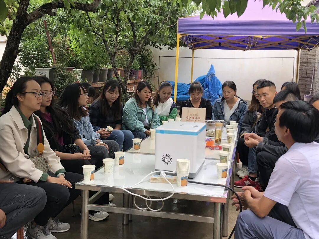 青年干部學堂全體學員、鎮(zhèn)機關干部、朱苦拉咖啡非遺傳承人深入到咖啡制作傳承人蔡濟川家中學習了解朱苦拉咖啡歷史起源及傳統(tǒng)制作技藝。