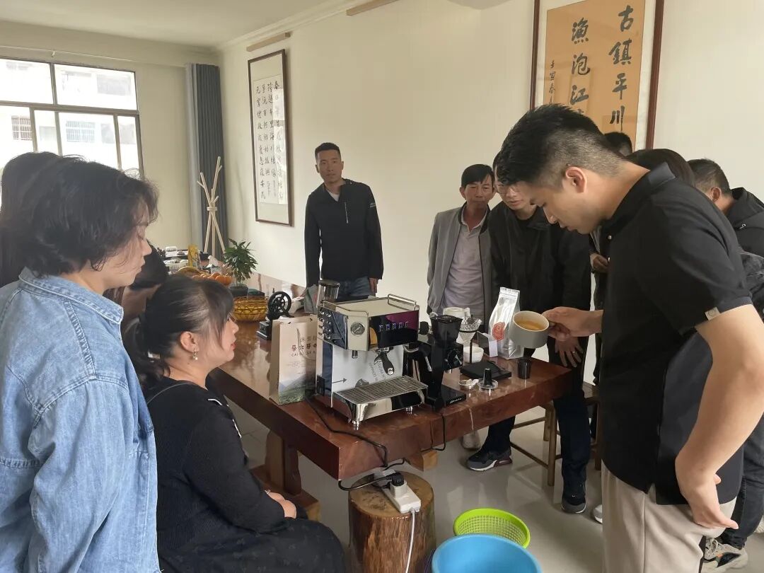 “平川朱苦拉,擁有中國最古老的古咖啡林,繁衍著擁有100多年樹齡的古咖啡樹,是中國最純正、最古老的波邦鐵皮卡品種,品質優(yōu)異,被稱為中國咖啡的‘活化石’。流傳至今的咖啡土法加工制作和飲用習慣,成為中國百年咖啡文化的原生地和經典?!辈虧▽⒅炜嗬Х葰v史向學員們娓娓道來。干部職工能認真聽講,積極提問互動,對咖啡的來源、種植、采收、制作等有了基本的了解。
