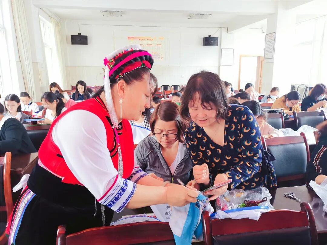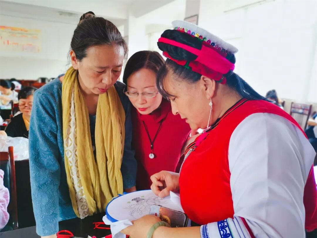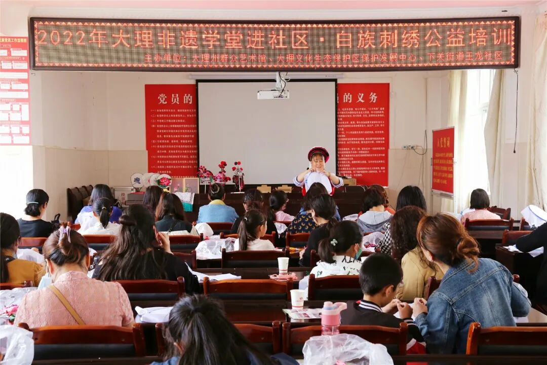 6月18日下午,大理州群眾藝術(shù)館、大理文化生態(tài)保護(hù)區(qū)保護(hù)發(fā)展中心(大理州非遺保護(hù)中心)聯(lián)合下關(guān)街道玉龍社區(qū)組織開(kāi)展“大理非遺學(xué)堂”進(jìn)社區(qū)·白族刺繡公益培訓(xùn)活動(dòng)。課堂上白族刺繡省級(jí)代表性傳承人李紅桃老師帶來(lái)精美的刺繡作品,詳細(xì)講解了白族刺繡主要針?lè)ê蜕蚀钆?。白族傳統(tǒng)刺繡藝術(shù)的發(fā)展經(jīng)歷了一個(gè)漫長(zhǎng)的歷史過(guò)程,其中凝聚著白族兒女的智慧和文化。