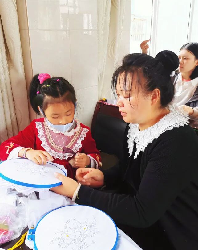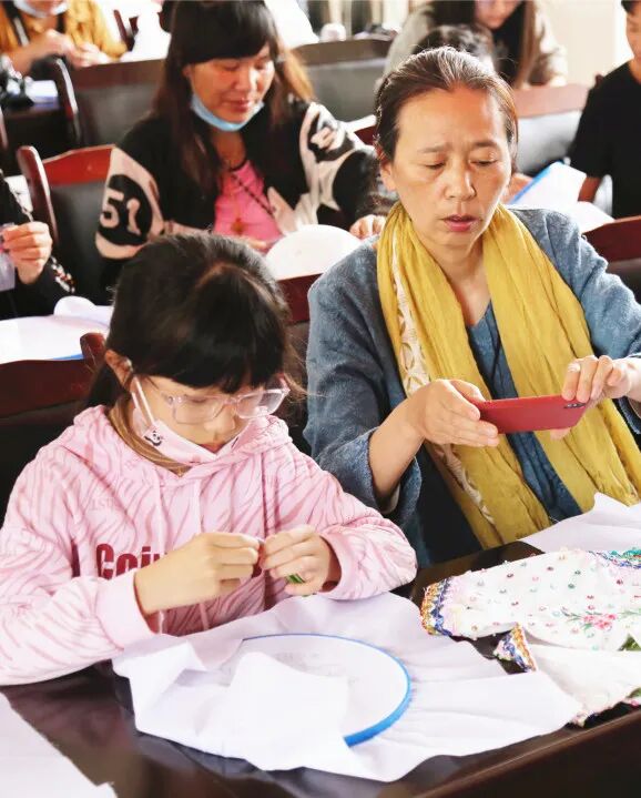 (認(rèn)真學(xué)習(xí)刺繡的學(xué)員)