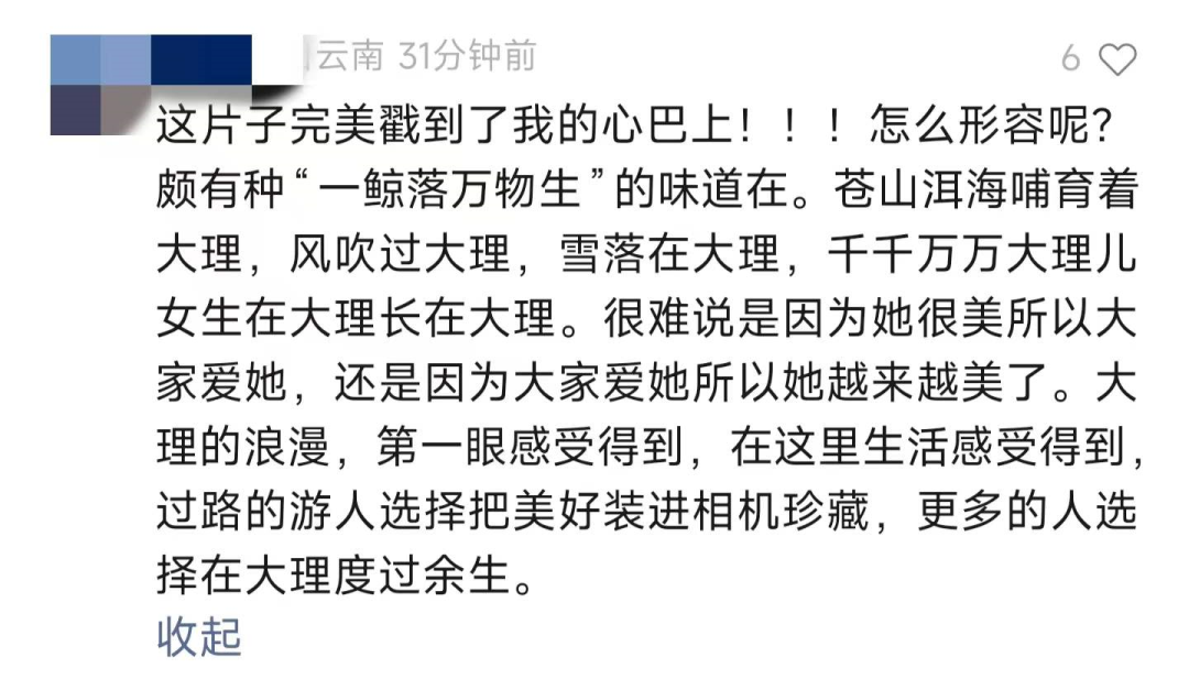 “洱海水變成了天上云又變成了蒼山尖尖的雪被白族阿奶背下澆上蜜成了甜滋滋的一掌雪”