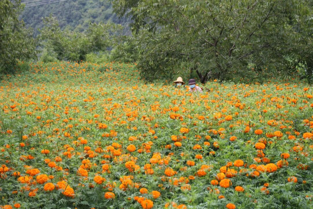 據(jù)梅竹芳介紹,萬(wàn)壽菊花期長(zhǎng),8月中旬開(kāi)始采第一茬,可采摘7到10茬花,采摘期預(yù)計(jì)可持續(xù)到10月底,預(yù)計(jì)畝產(chǎn)量可達(dá)2至4噸,每噸收購(gòu)價(jià)為1000元。
