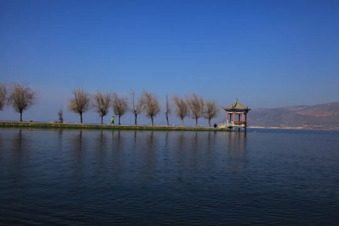 大理的網(wǎng)紅打卡點(diǎn),每年10月—12月,洱海里的水杉紅了,拍照非常出片。