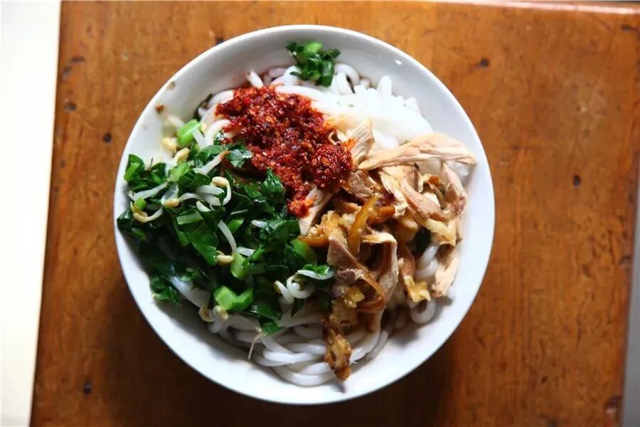 嫩滑的米線配撒上雞絲,加上豐富配料,好吃爽口還解饞。
