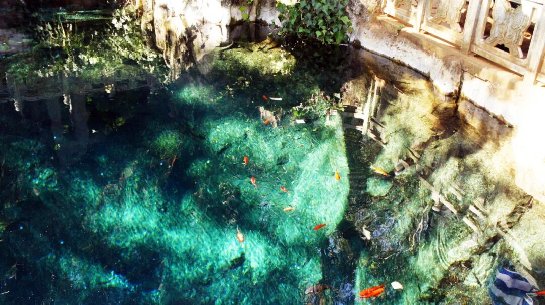 這里是《五朵金花》阿鵬和金花對(duì)歌談情的地方,泉水澄澈,美如碧玉。