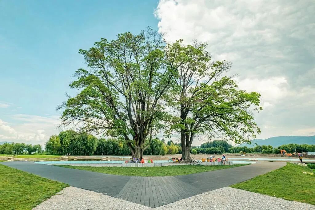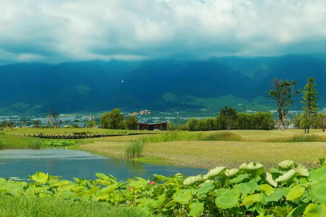 生態(tài)廊道的起點(diǎn),草地、花海、木棧道,儼然一幅大理水墨畫。