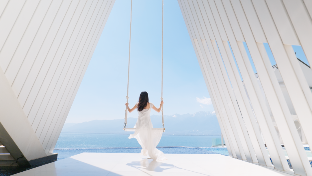 專業(yè)的旅拍基地,藍(lán)天加上獨(dú)特藝術(shù)氛圍,不管在秋千,還是天梯都非常出片。