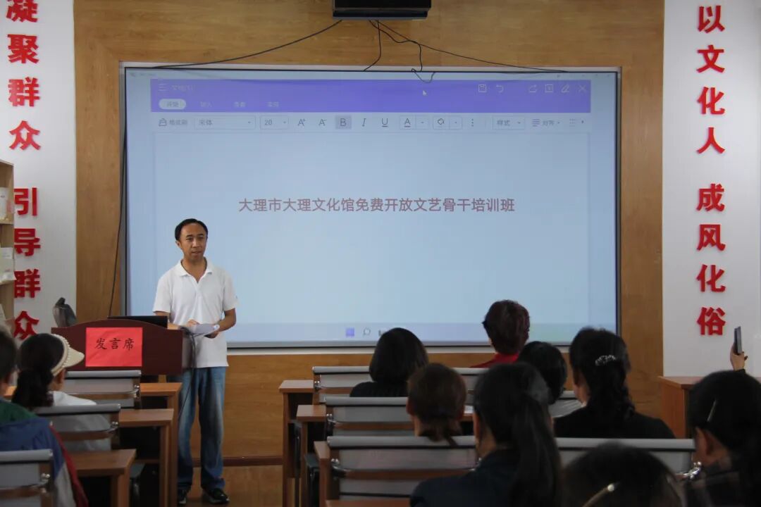 為進(jìn)一步推進(jìn)基層文化隊(duì)伍建設(shè)、繁榮鄉(xiāng)鎮(zhèn)文化活動(dòng)、不斷豐富和提升群眾精神文化生活,提高全市基層文化隊(duì)伍和文藝骨干的業(yè)務(wù)水平,2022年8月25日—26日,由大理市文化和旅游局主辦、大理市大理文化館承辦的2022年免費(fèi)開放文藝骨干培訓(xùn)班在灣橋鎮(zhèn)如期舉行。