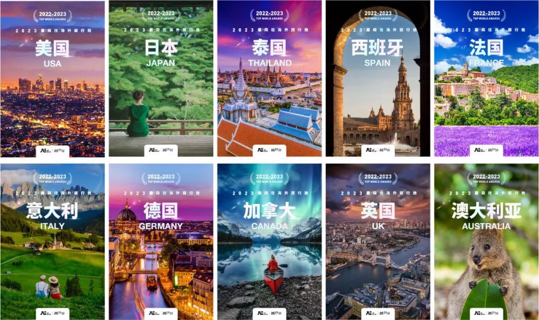 近日,國務(wù)院聯(lián)防聯(lián)控機制發(fā)布《關(guān)于對新型冠狀病毒感染實施“乙類乙管”的總體方案》,表示“有序恢復(fù)中國公民出境旅游,取消入境后全員核酸檢測和集中隔離,取消’五個一’及客座率限制等國際客運航班數(shù)量管控措施?!奔又饲胺酪咝率畻l的出臺,境內(nèi)外旅游儼然全面開放。在此之下,由最世界旅行探索一年,并結(jié)合千萬用戶大數(shù)據(jù)的“2022-2023年度最世界榜單”正式出爐。此次榜單,從最向往海外旅行地、最佳旅行地、最具潛力旅行地、最佳文旅融合之城、最佳生態(tài)旅行地五大維度出發(fā),為大眾呈現(xiàn)了年度五大榜單。