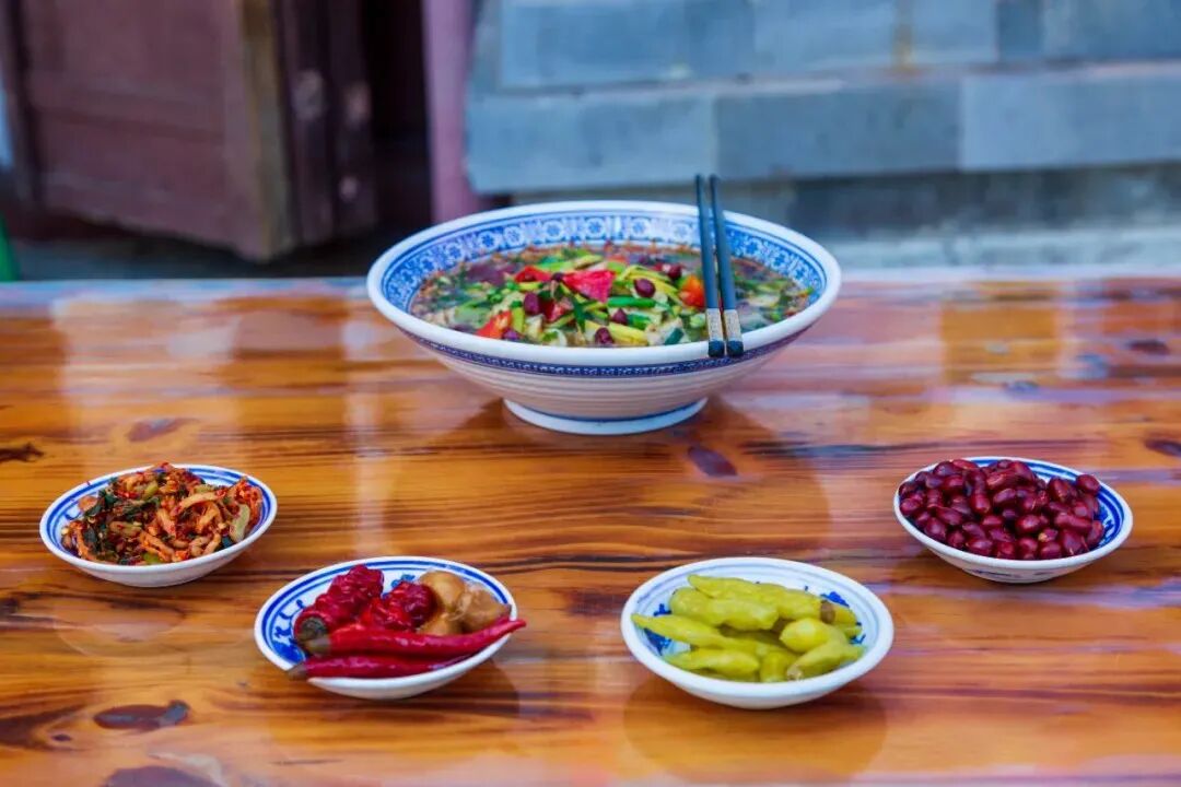 一古面又稱扯扯面、長壽面,“一碗面是一根,一鍋面是一根,一家人吃的是一根,一千個人吃的還是一根……”這是對南詔“一古面”最形象的描述。南詔一古面加上南詔故地新鮮的菌子、竹筍、荷包豆、臘肉火腿等炒制的帽子。這樣的一份美食,得到對“吃”很講究的巍山人的認(rèn)可和喜愛,很多家庭也學(xué)會了這樣的制作手藝。逢年過節(jié),老人過壽,都要做這樣的拉面來吃,寓意老人長壽,家中子孫綿延,幸福不斷,好運(yùn)連連。