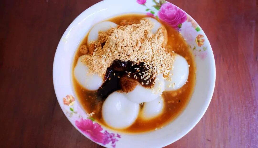 “牛打滾”采用上等糯米粉拌合后煮成湯餅,再將湯餅放入炒香的黃豆面中翻滾,使湯表面都裹成金黃色,按其制作過程,把它形象地稱作“牛打滾”。將成品放入碗中,再加糖稀、芝麻、玫瑰調(diào)料即可乘熱食用。