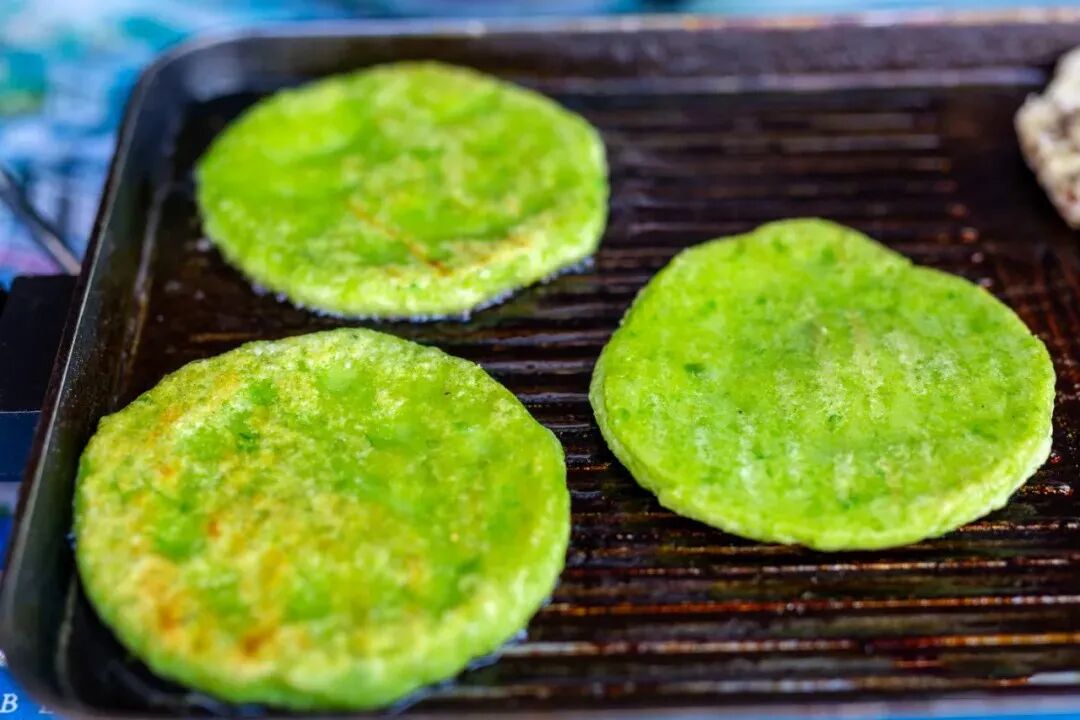 吃花的習(xí)俗在巍山由來已久。棠梨花開時節(jié),趁放牧砍柴把花骨朵采摘回家,浸泡在冷水里,泡上一至二天后,取二兩三線臘豬肉剁碎,和攏糯米面揉勻,捏成厚約15厘米、大如茶盅的圓形餅,待炒鍋中的香油煉熟,將餅放入鍋中,邊用文火煎邊用勺壓勻,兩面翻煎,獨(dú)居彝家風(fēng)味的美食——棠梨花粑粑就做成了。