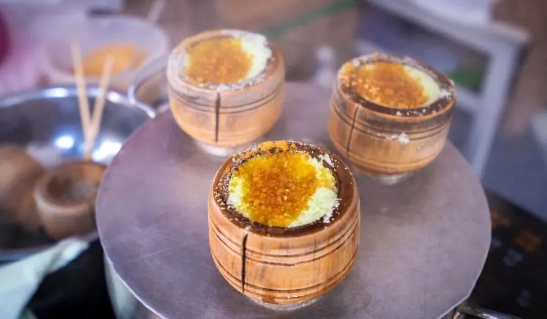 在鍋蓋上挖出小洞,用小竹筒做成上圓下尖的小甑,中間用鐵皮鑿出有透氣小孔的隔板。這樣,小圓甑恰好放在鍋蓋的洞眼上,只需在鑼鍋中盛滿水,置于爐火上,在小甑內(nèi)放上混合好的米面,兩個小甑一起蒸,三五分鐘后,米糕就熟了。一合小糕,帶來一份悠長的牽掛和潤澤心底的濃濃愛意。