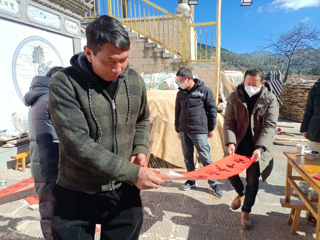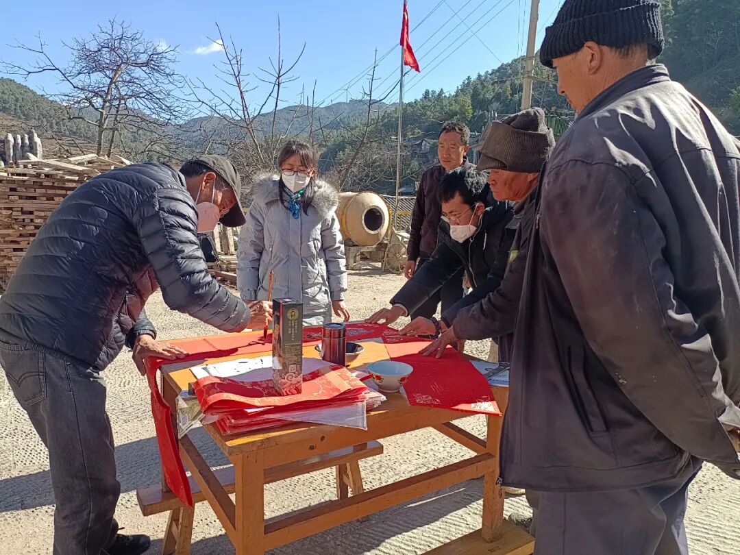 活動邀請了縣書畫協(xié)會的書法大家現(xiàn)場為群眾書寫對聯(lián),“風(fēng)調(diào)雨順千山綠,政通人和萬里春?!薄昂椭C盛世春風(fēng)暖,幸福人家好事多?!睍ù蠹覀儞]毫潑墨,用墨香傳遞希望和祝福,一幅幅寓意美好、期望幸福的對聯(lián)流于筆端,大家接過紅紅的對聯(lián),臉上洋溢著喜悅的笑容。熱心的書法大師還為村民剛落成的新居題了吉祥、祝福的文字,使普通的農(nóng)村小院充滿了歡樂和喜氣。