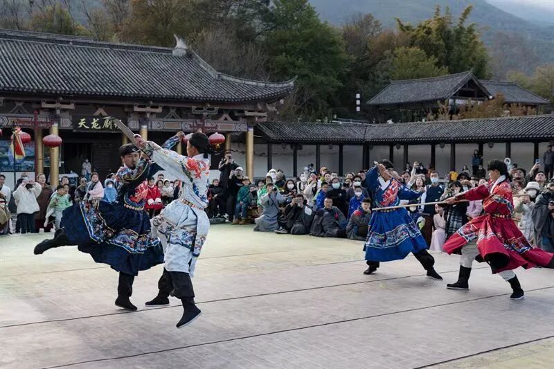 春節(jié)期間,大理州文旅部門將免票政策、發(fā)放消費(fèi)券等優(yōu)惠福利與文旅新業(yè)態(tài)新產(chǎn)品緊密結(jié)合,催生一系列網(wǎng)紅文旅新場景,大理旅游實(shí)現(xiàn)體驗(yàn)提升、服務(wù)升級、吸引力增強(qiáng)。天龍八部影視城推出“天龍八部武俠沉浸街區(qū)”,全面融合“文旅+商業(yè)+演藝+劇本娛樂”等消費(fèi)類型,吸引了一大波“劇本迷”前往打卡體驗(yàn),帶動(dòng)了景區(qū)消費(fèi)的整體升級;崇圣寺三塔、蝴蝶泉公園、南詔風(fēng)情島等景區(qū)推出白族耍龍、游蝶泉?鬧新春、文藝演出等系列活動(dòng),打造傳統(tǒng)景區(qū)沉浸式新玩法,人氣持續(xù)高漲,二消持續(xù)活躍。喜洲稻田有風(fēng)集市和柴米多、床單廠等文創(chuàng)集市飄出文藝時(shí)尚“煙火氣”,創(chuàng)意足、人氣旺,為游客帶來不一樣的新春體驗(yàn)。