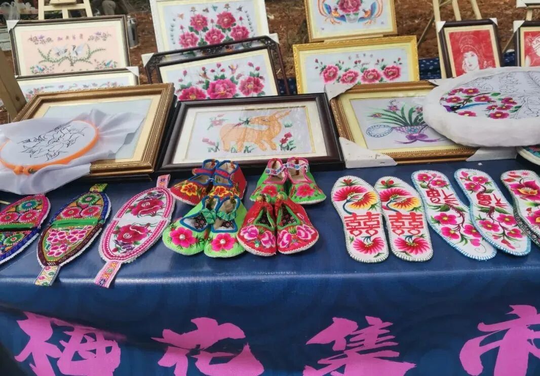 期間,還舉行了中國梅花精神論壇,梅花集市開市儀式,“梅故人”石碑揭牌儀式,梅花采風(fēng)寫生活動(dòng),招商引資集中簽約儀式,梅果企業(yè)產(chǎn)品發(fā)布會(huì)、品鑒等活動(dòng)。其中,“梅花集市”上,村民、游客聞?dòng)嵍鴣?,集市現(xiàn)場人頭攢動(dòng),熱鬧非凡!羊皮褂、非遺剪紙刺繡、木瓜果脯、乳扇、氣硫蛋......各種商品琳瑯滿目,讓人眼花繚亂。叫賣聲、討價(jià)聲、吆喝聲此起彼伏,充滿煙火氣的集市上洋溢著濃濃的年味……