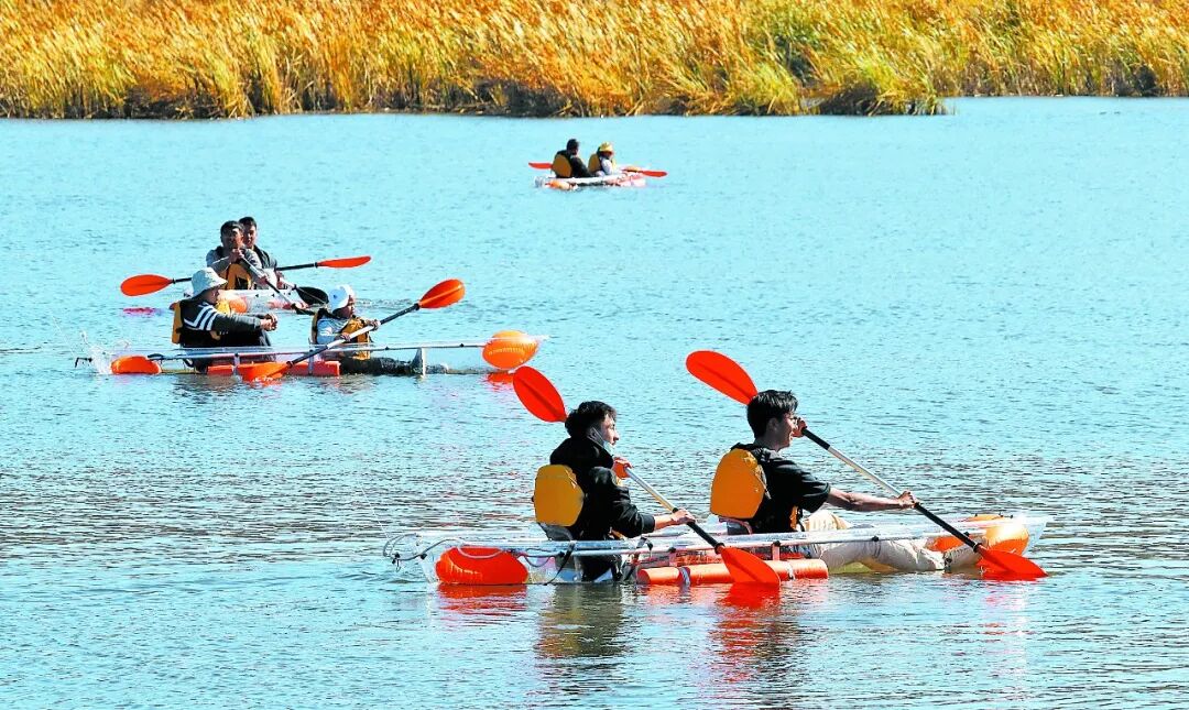 滇池南岸晉寧小漁村,游客體驗(yàn)透明船體劃艇。楊崢 攝