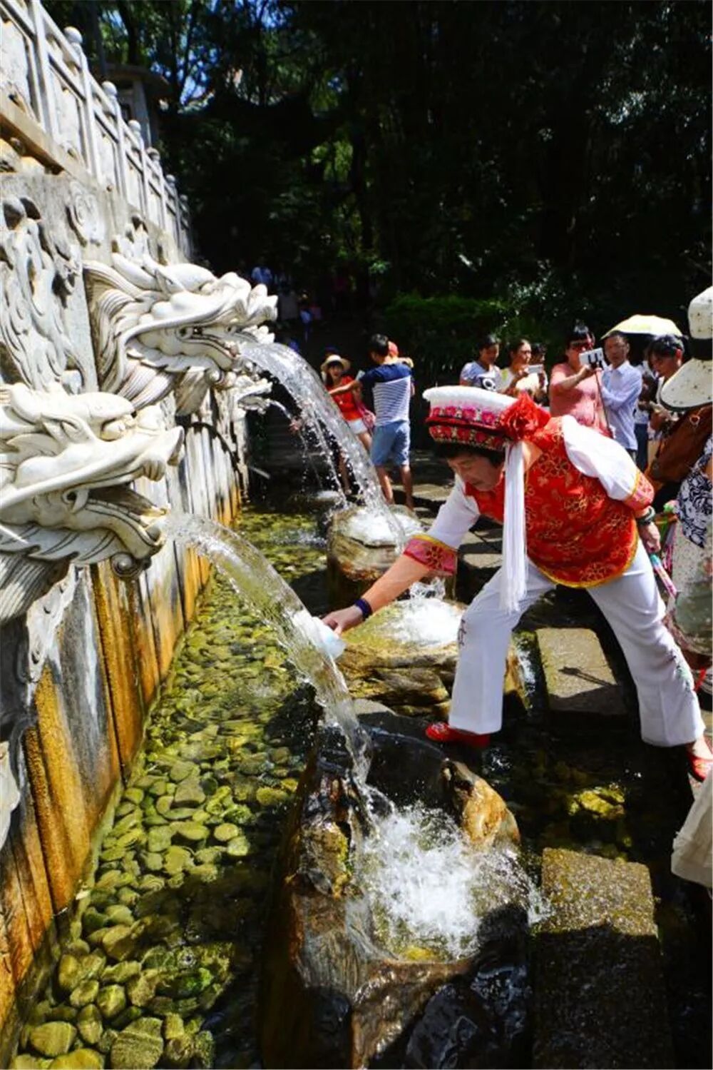 一路走來,蒼翠如影,流水潺潺,俯可賞碧水、清泉,仰可觀奇木、異石,可謂妙趣橫生。