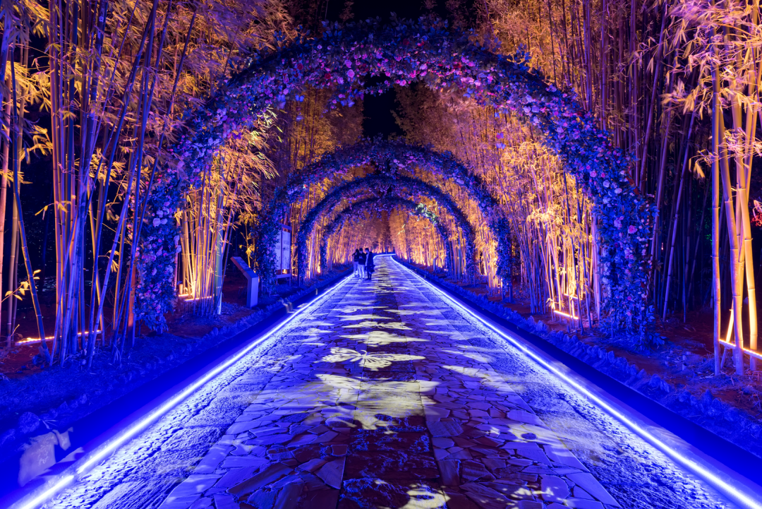 情侶大道、夫妻樹、五朵金花劇照、對歌潭、情人湖……目前蝴蝶泉打造了多個象征愛情的打卡地,每年蝴蝶會來自全國各地的許多情侶,都喜歡到這里相會?,F(xiàn)在去蝴蝶泉,還有夢幻燈光秀可以打卡。整個公園按照不同區(qū)域進行燈光布景,結(jié)合氛圍營造、實景交互、全息投影、水幕造勢、3D動畫等形式,成為了夢幻光影的伊甸樂園。