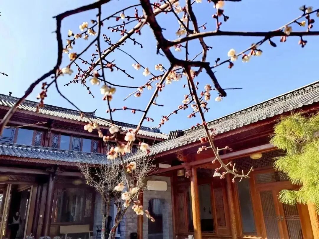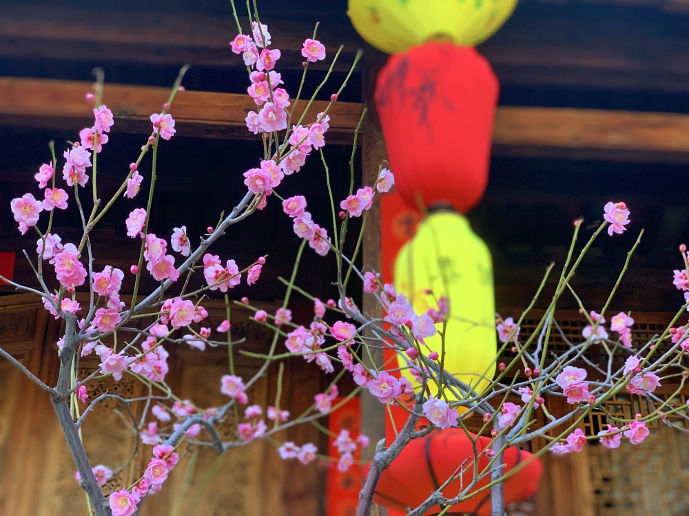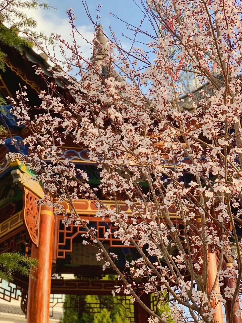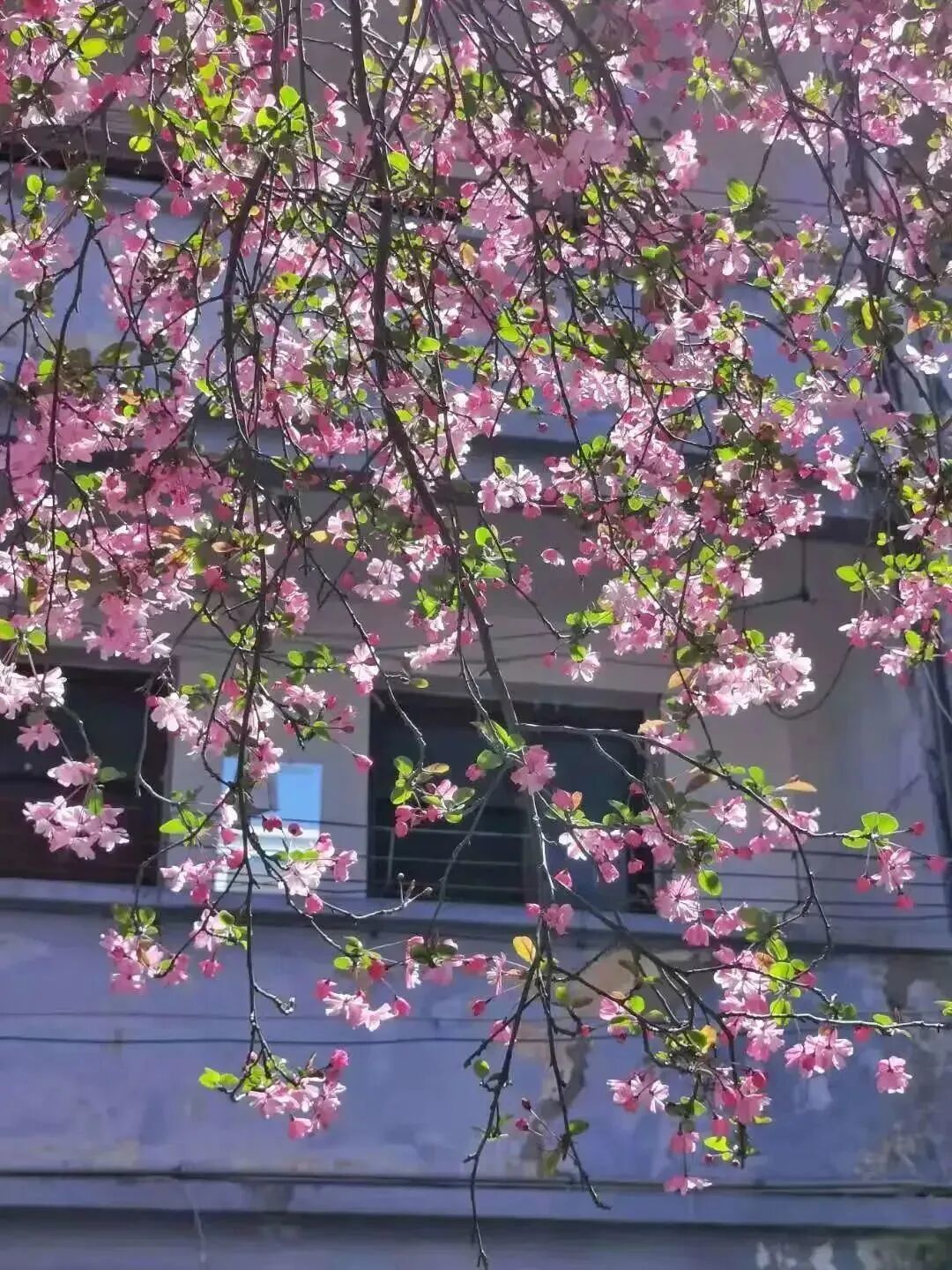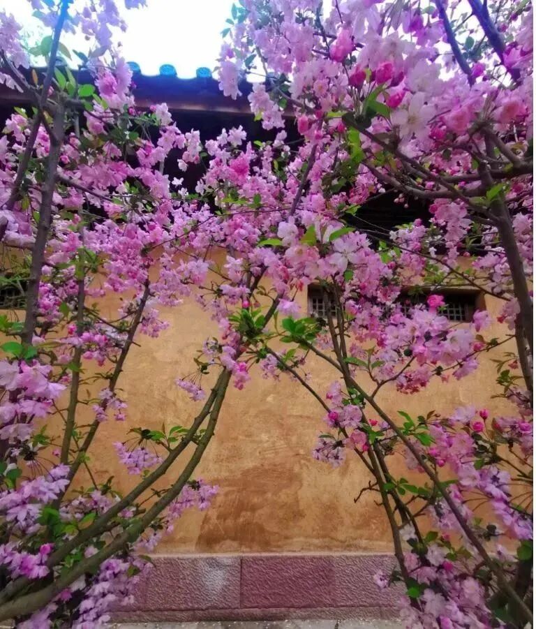 “紅花初綻雪花繁,重疊高低滿小園。”