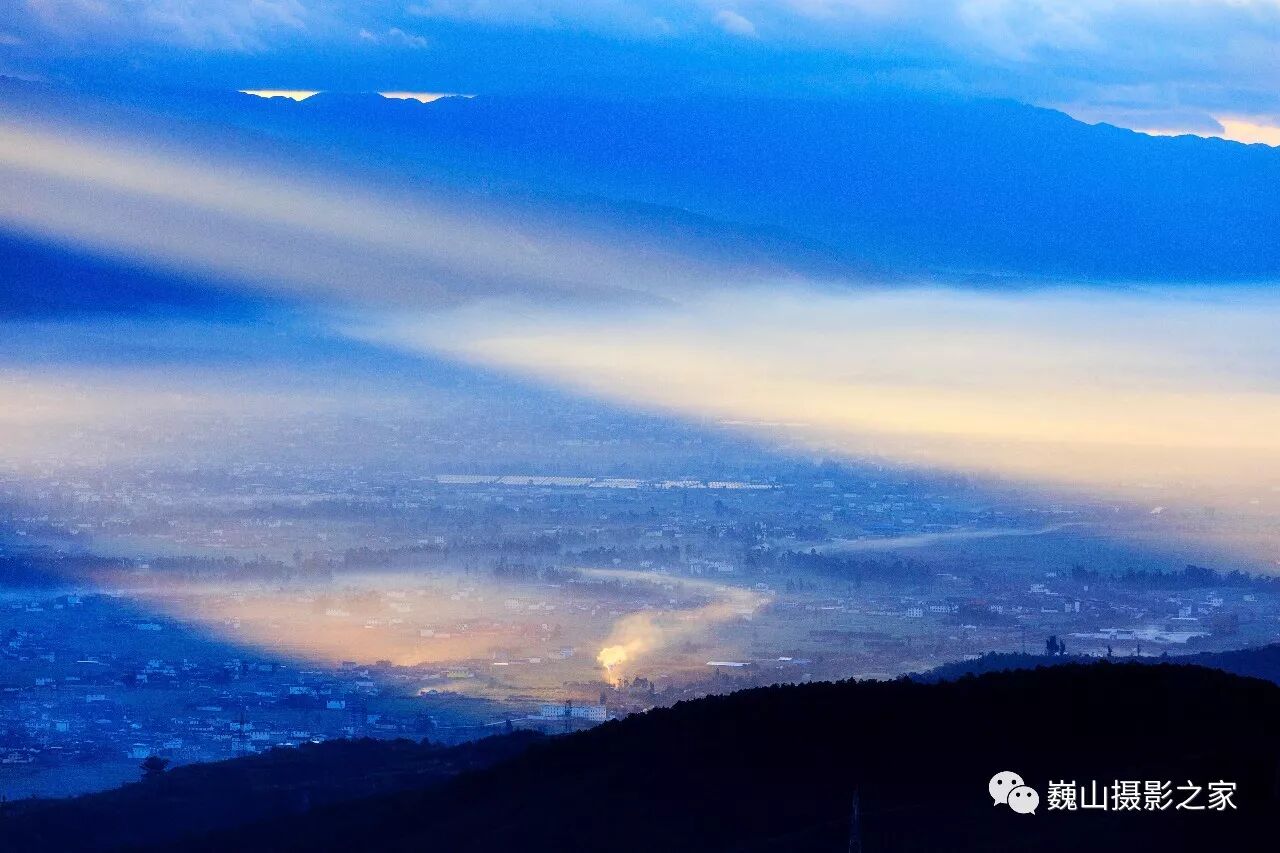 當東方破曉,紅霞滿天,蜿蜒曲折地穿過整個巍山壩子的紅河水隨著光影游走,宛如一條騰空的巨龍。