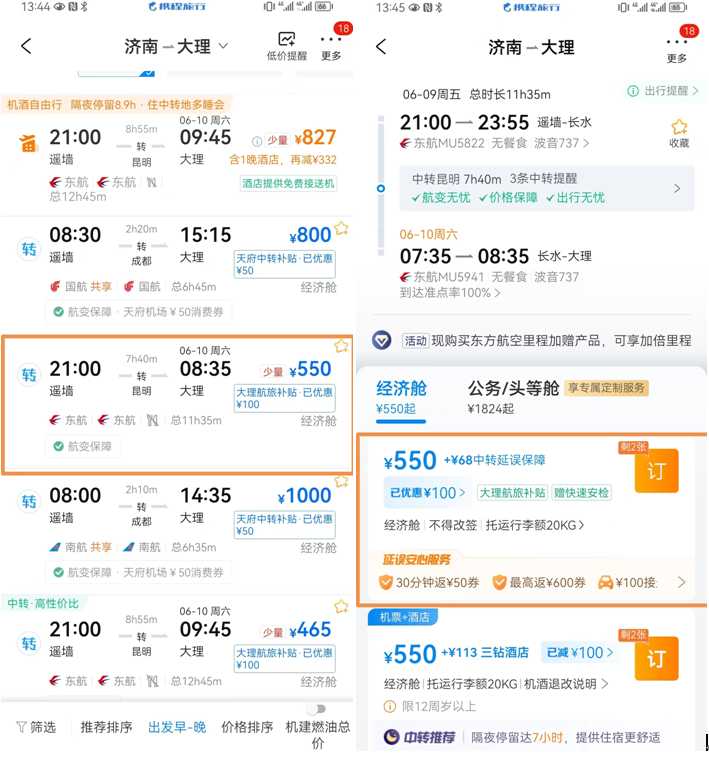 打開攜程旅行APP“機票”頻道,搜索云南臨滄、云縣、巍山、保山、永平、漾濞、祥云、楚雄、南華、鶴慶、麗江等11個站點的進(jìn)出港行程,點擊“查詢”進(jìn)入產(chǎn)品列表頁,選擇“火車+飛機”中轉(zhuǎn)產(chǎn)品,選購帶有“大理航旅補貼”優(yōu)惠標(biāo)簽產(chǎn)品,下單即享高鐵票價二等座票價全額減免,最高可減免101元。