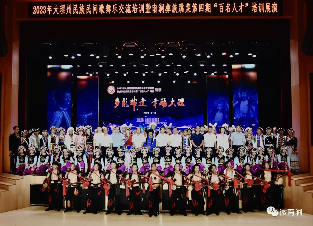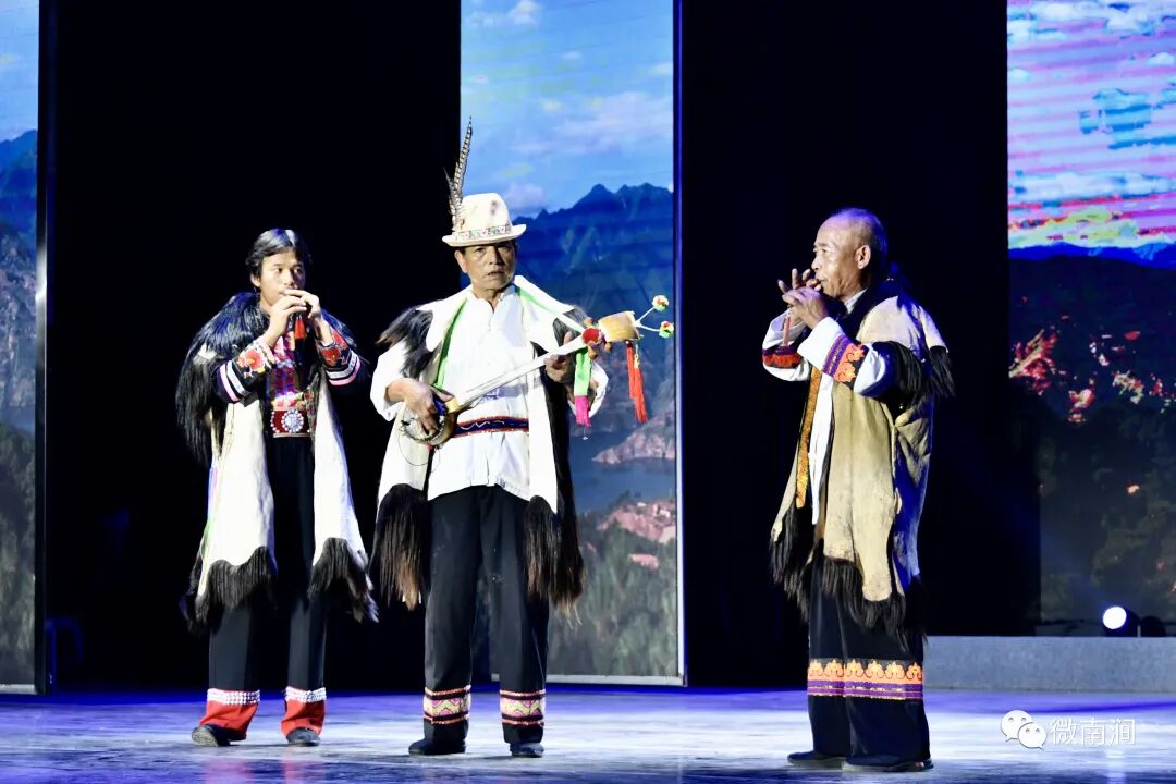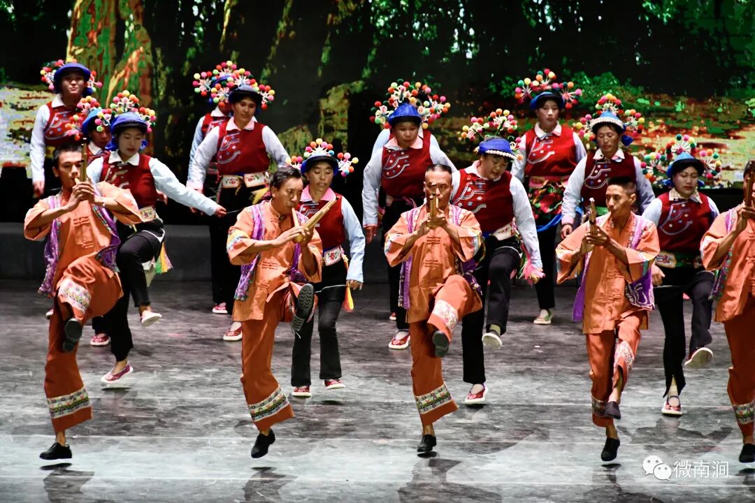 來自全州各地共14個非遺代表性項目技藝以舞蹈、器樂、合唱、民俗表演等多元藝術(shù)形式在舞臺上輪番亮相。南澗跳菜、彝族打歌、白族嗩吶、劍川白曲、白族大本曲、白族霸王鞭、傈僳族山歌、彌渡民歌等富有民族特色、地域特色、文化特色的非遺節(jié)目,將氣氛反復(fù)推向高潮,獲得了現(xiàn)場觀眾們經(jīng)久不息的掌聲與喝彩,展現(xiàn)了大理州豐富多彩、充滿活力和魅力的非遺資源。