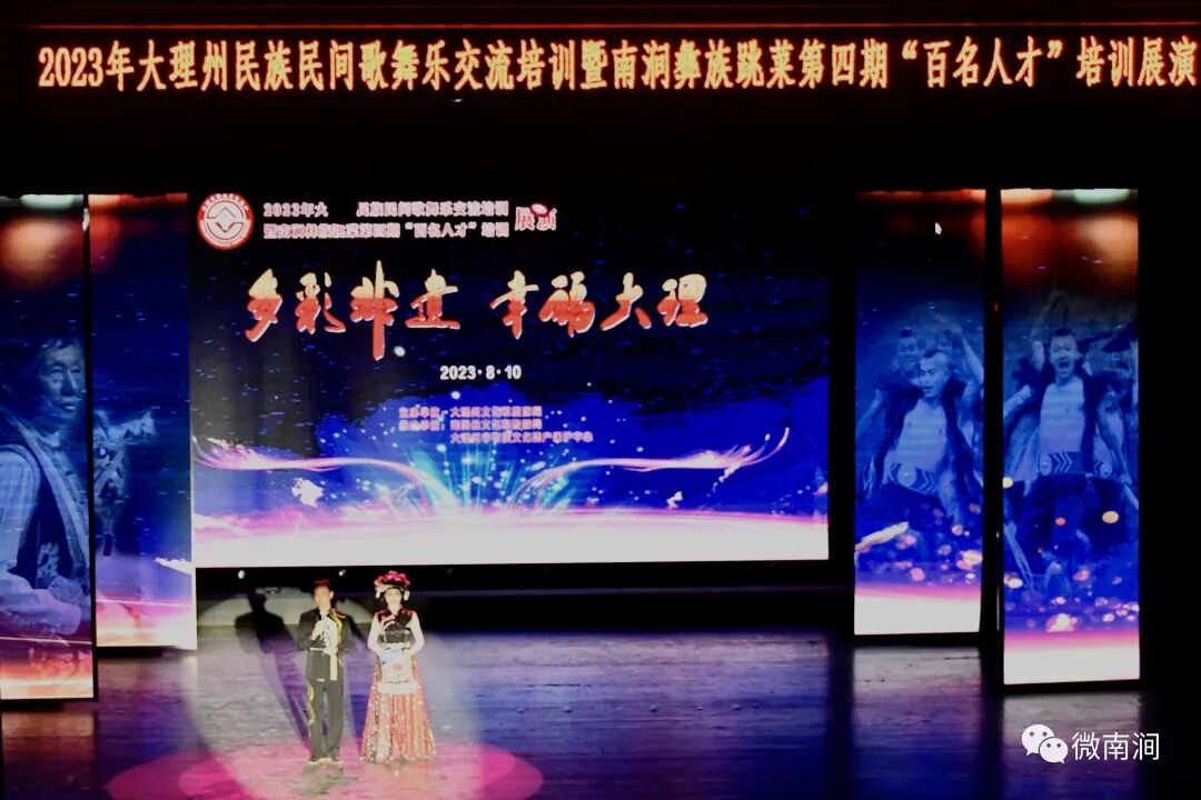 此次展演以“多彩非遺·幸福大理”為主題,活動在洱源縣白族嗩吶《歡慶》中拉開序幕。嗩吶高音嘹亮,低音婉轉(zhuǎn),充分體現(xiàn)了洱源人民對美好生活的向往與歌頌;舞蹈《南澗跳菜》剛?cè)岵?,曾多次登上國家級舞臺,融合了舞蹈、音樂、雜技、飲食等多種元素,體現(xiàn)了南澗人民的智慧和文化底蘊;云龍白族民歌《趕馬調(diào)》詼諧幽默、悅耳動聽,集中反映了白族人民樂觀自信、開朗活潑的民族性格……