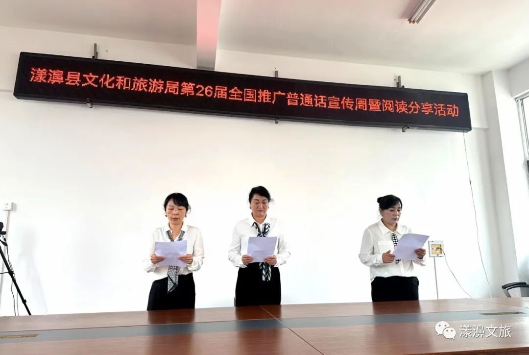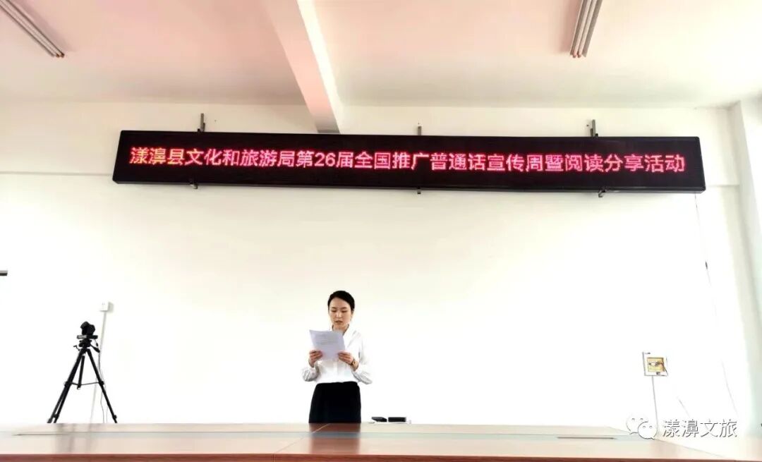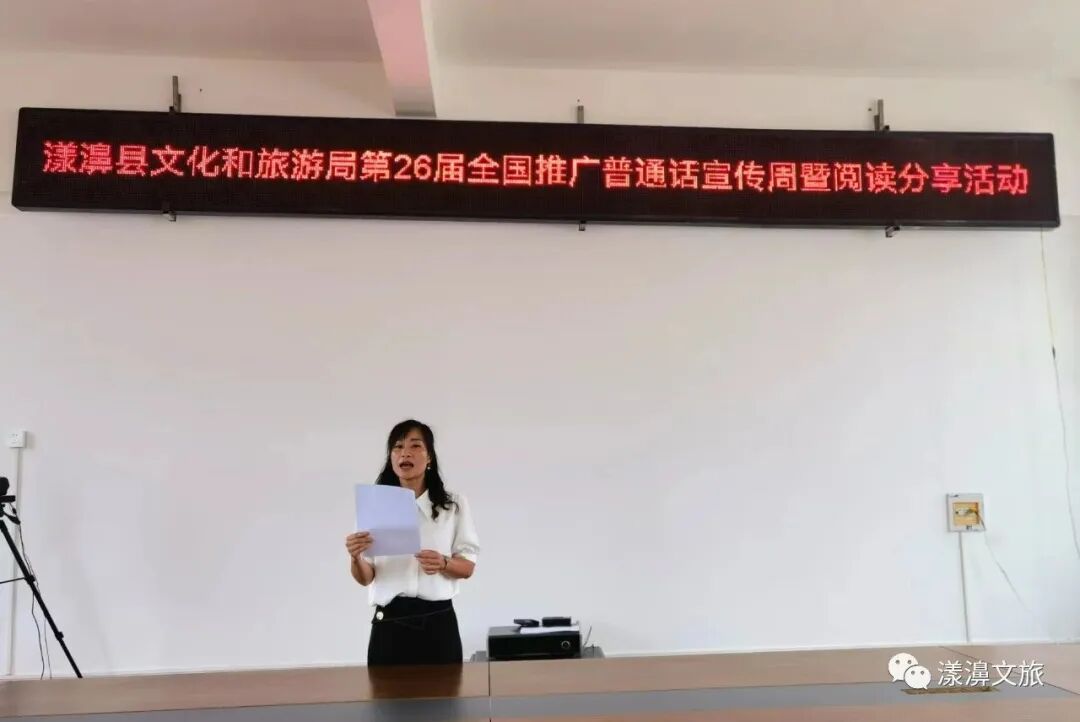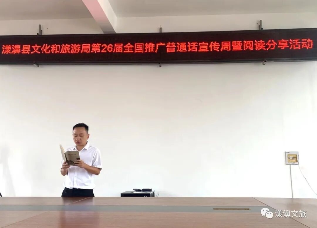 “如果你是一位共產(chǎn)黨員,你一定不會忘記,在黨旗下宣誓的那一天,把右拳舉起,一句句的誓詞鏗鏘有力……”9月11日上午,漾濞縣文化和旅游局組織全體干部職工開展以“推廣普通話,奮進(jìn)新征程”為主題的閱讀分享活動,慷慨激昂的朗誦從漾濞縣文化和旅游局會議室傳來。