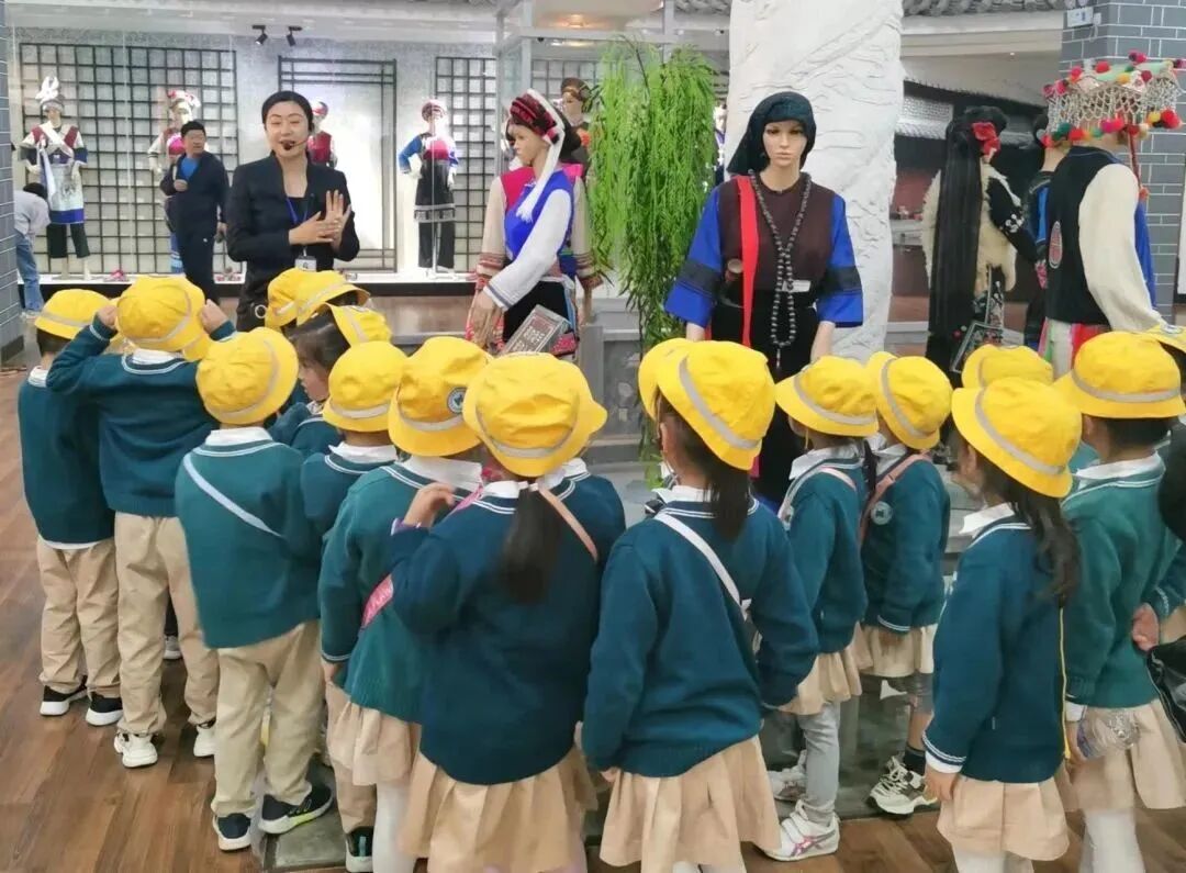 在白族文化展廳,講解員耐心細(xì)致地講解了白族的發(fā)展歷史和白族的服飾文化,小朋友們對白族服飾中色彩艷麗的刺繡產(chǎn)生了濃厚的興趣,初步了解了在漫長的歷史發(fā)展中,白族創(chuàng)造了悠久燦爛的文化。