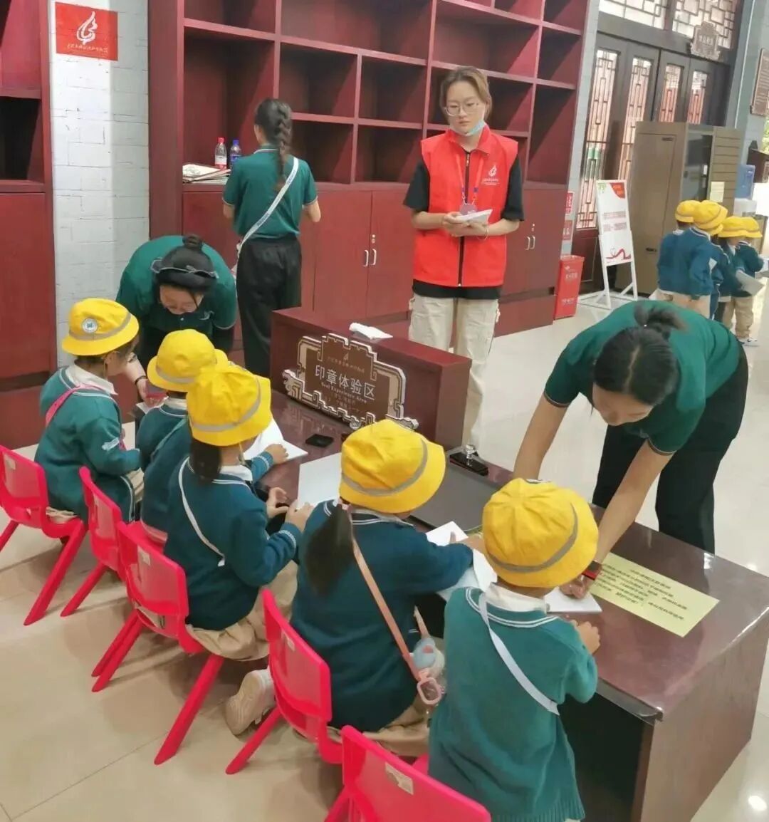 在印章體驗區(qū),小朋友們有序地體驗了博物館的文創(chuàng)印章,包括館徽一枚,館藏珍貴文物三枚,帶走獨屬于自己的博物館印記。
