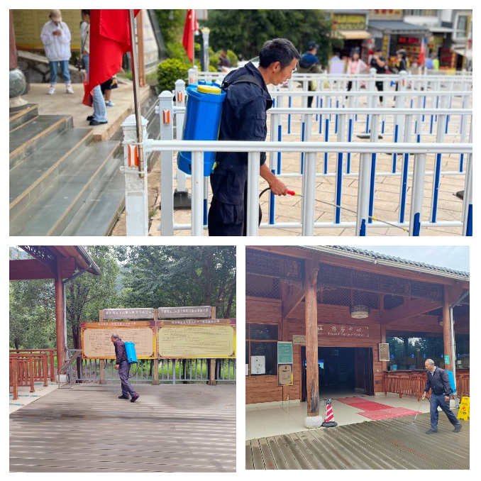 專人定時定點對衛(wèi)生間、休息區(qū)、游客中心等區(qū)域進行清潔、消殺,積極營造安全、健康的旅游環(huán)境。